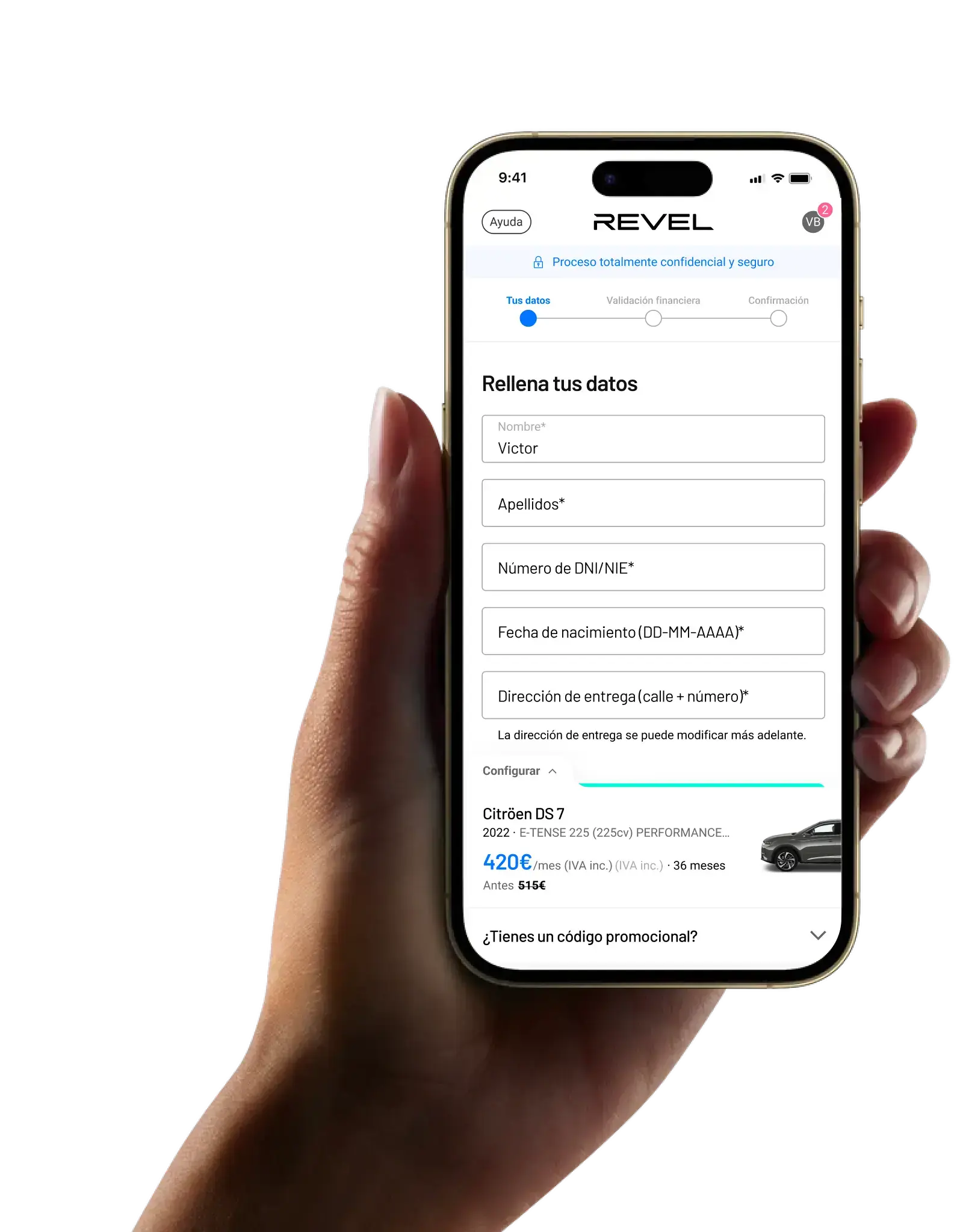 Con REVEL puedes contratar tu coche nuevo 100% online, sin papeleos, sin entrada, ni complicaciones, y recibirlo en la puerta de tu casa en pocos días.